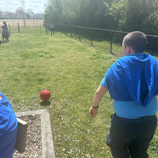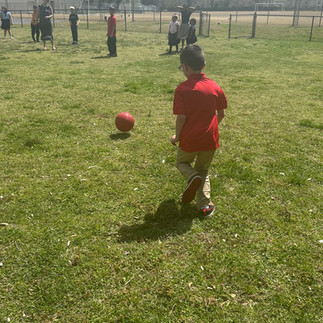 Testing Break! After a full morning of Standardized Testing, Elem. and HS Students played a game of kickball!